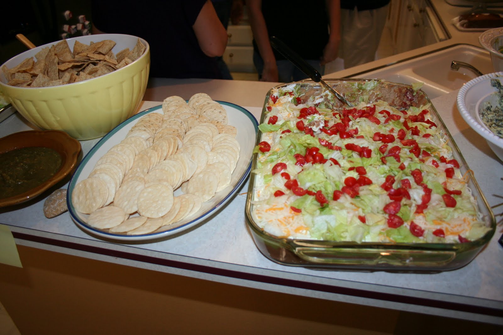 Left is a very difficult (just kidding) already made spinach artichoke dip from Sams. But the middle is homemade guacamole and on the right is my hubby's amazing homemade salsa.